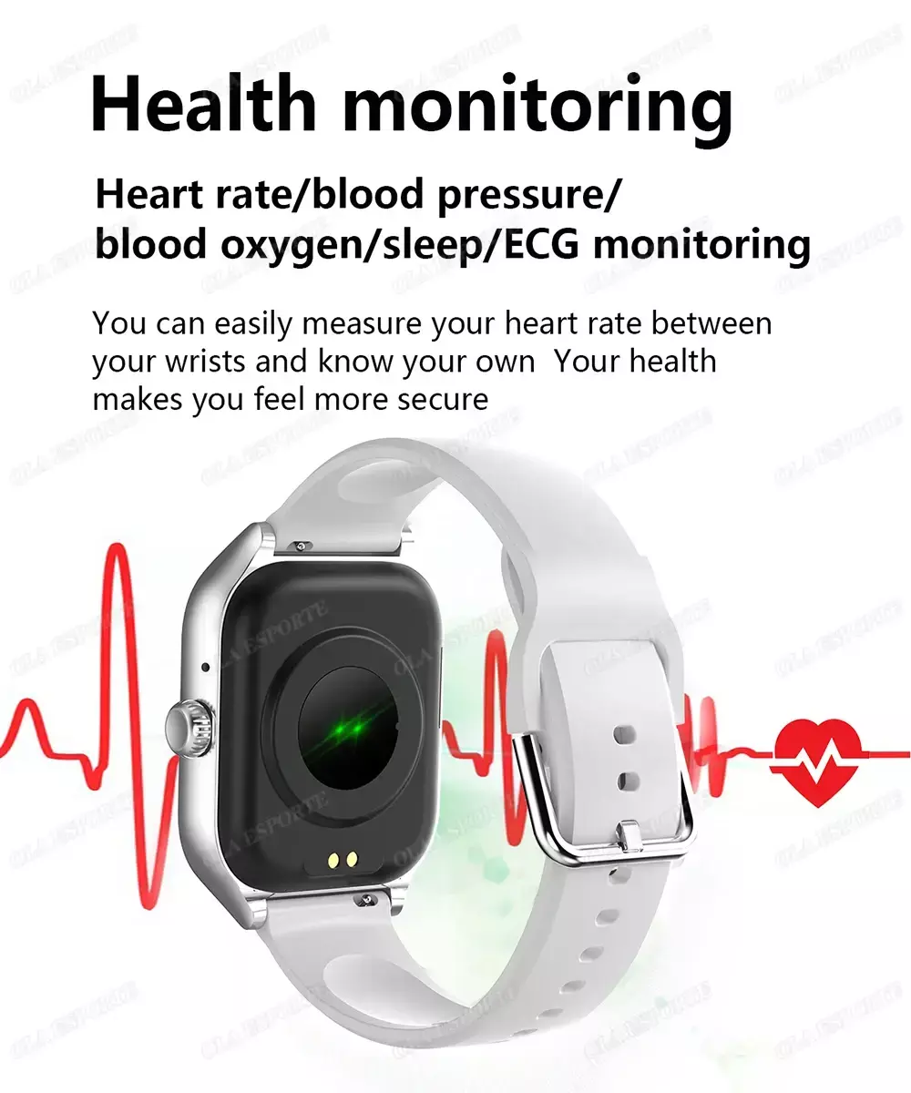 • Compacto e elegante:Com seu formato quadrado e design moderno, este smartwatch é compacto e elegante, perfeito para homens e mulheres de todas as idades.